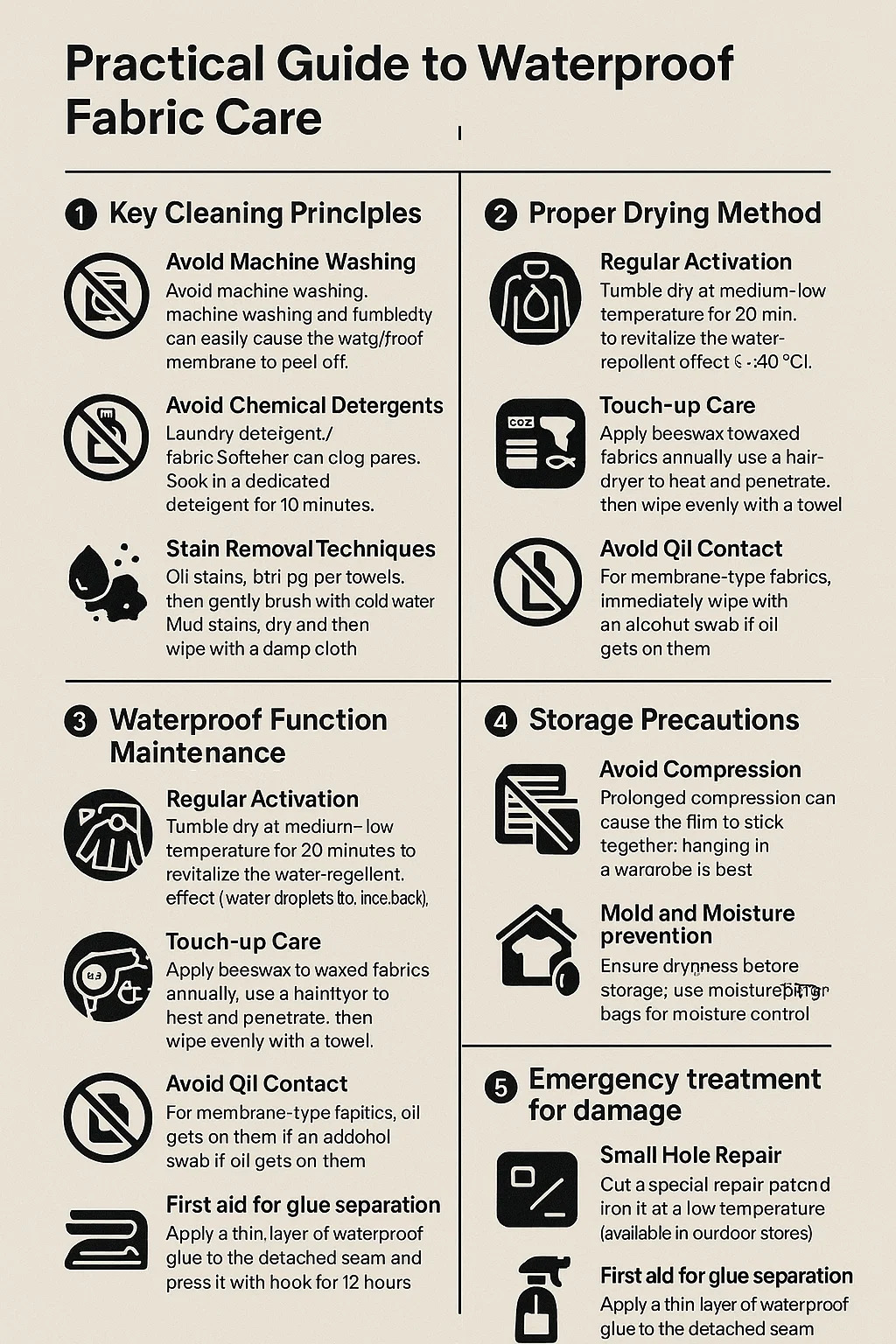 Kuinka hoitaa ja ylläpitää vedenpitävää kangasta?