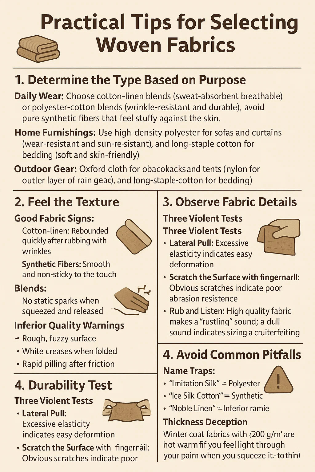 Päivittäinen käyttö: Valitse puuvilla-pellavasekoitukset (hikeä imevät ja hengittävät) tai polyesteri-puuvillasekoitukset (ryppyjä kestävät ja kestävät) välttäen puhtaita synteettisiä kuituja, jotka tuntuvat tukkoisilta ihoa vasten.